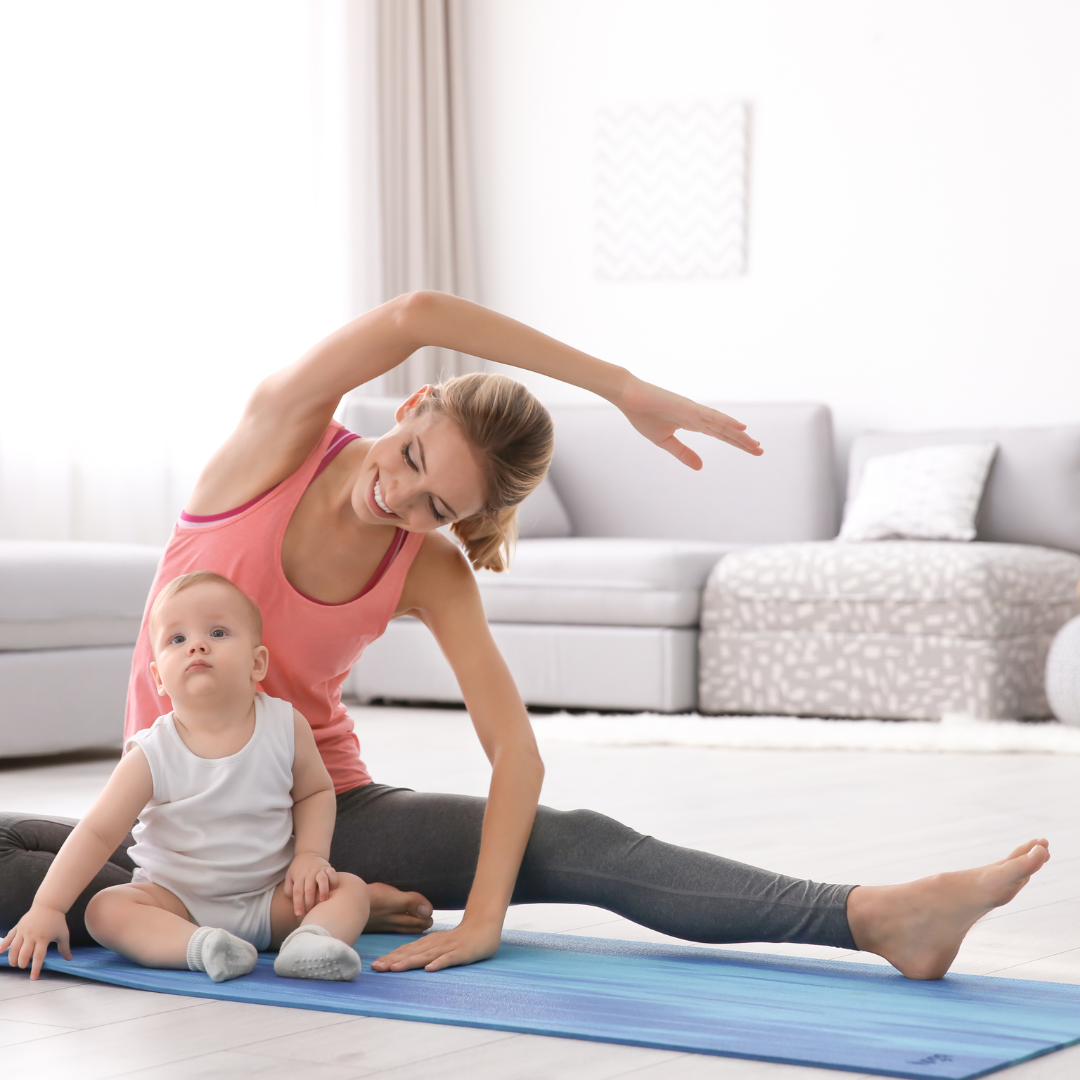 • Easy to follow — even if you’re holding your baby or have never done yoga